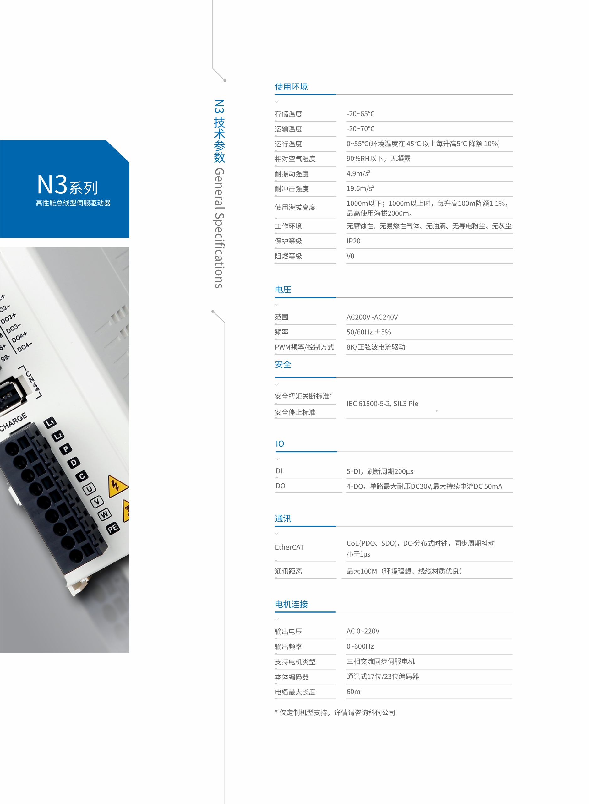 產(chǎn)品說明:N3系列伺服驅(qū)動器比N2體積縮小20%,縮小機(jī)柜體積。支持0.2kW-3kW,